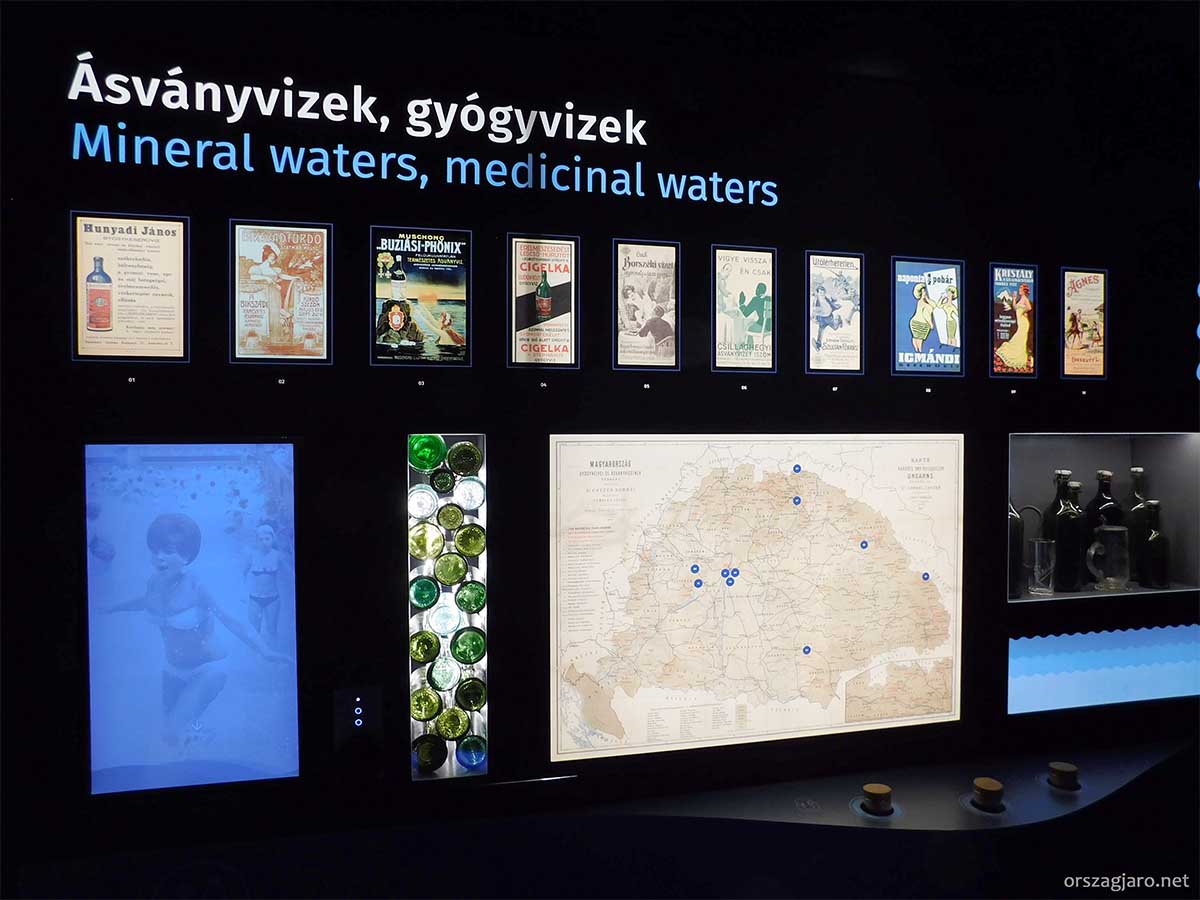 A Vízeum kiállítás bemutatja a vízgazdálkodás múltját, jelenét, a vízzel kapcsolatos innovációkat, szemlélteti a víz erejének felhasználását, feldolgozza a folyók szabályozását, bemutat hajózással kapcsolatos érdekességeket és hajómaketteket, foglalkozik többek között a fürdés történetével, a Balatonnal, ásványvizekkel és a szódavíz történetével is.